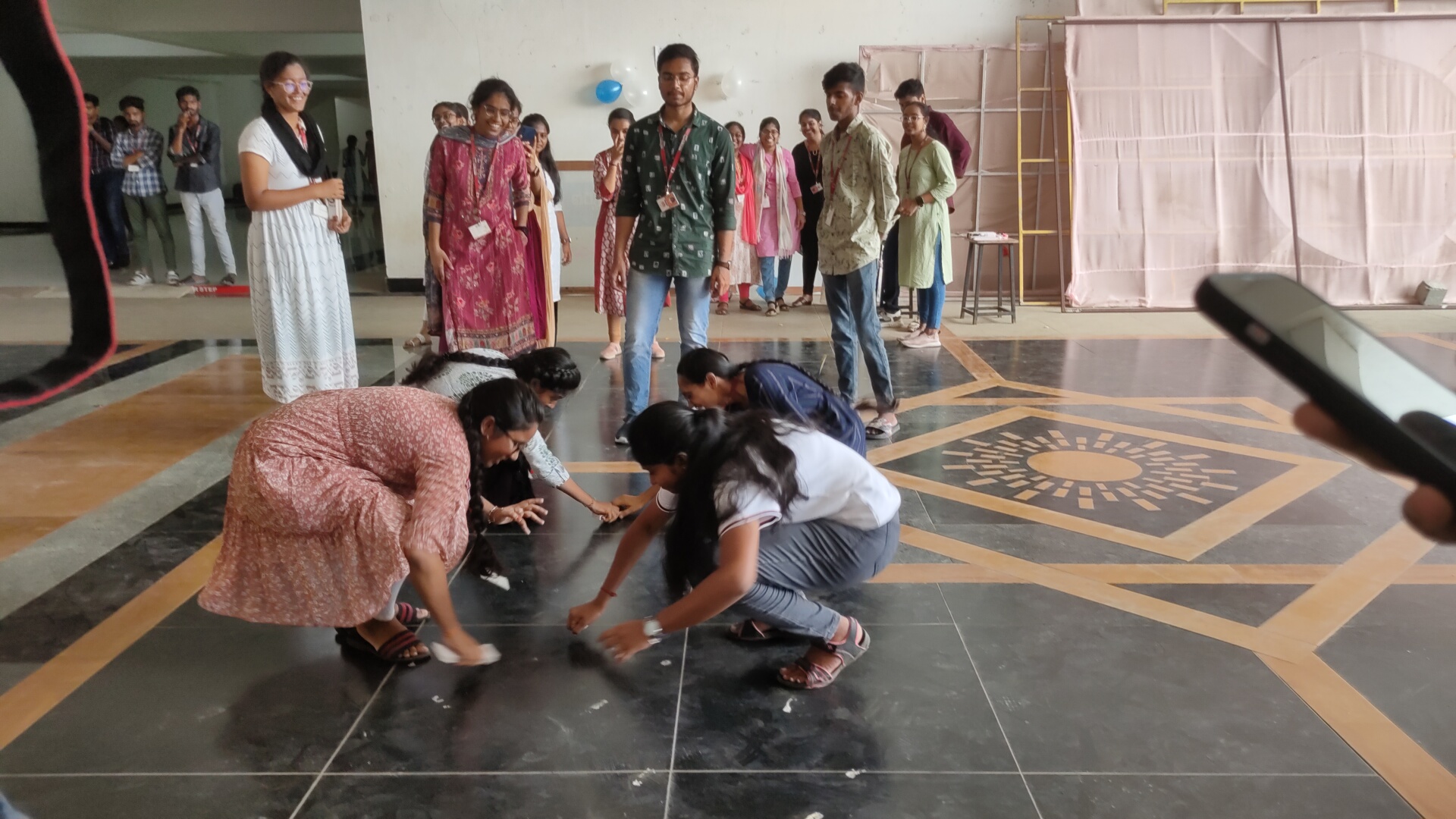 "Grab the Part" is a thrilling event with 20 pairs of participants competing simultaneously. They stand opposite each other, poised to react when the instructor calls body parts like "knees" or "eyes." They need to hold the part they are told by the instructor. They will continue to grab the parts until they are told to stop and grab the item placed in front of the participants.