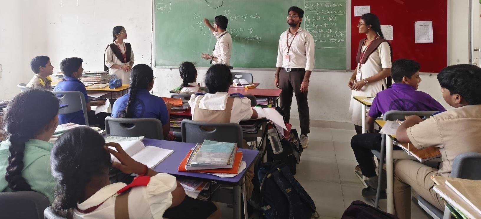 Finally, the ACM Chapter officers concluded the session by addressing the students' doubts regarding the topics discussed during the Hour of Code event. They cleared any questions related to the impacts of computing and the various computing devices showcased. Feedback was collected from the students to understand their thoughts about the Hour of Code event.
